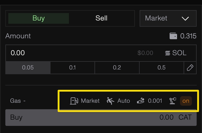 You can quickly view your active trading settings directly above the Buy button. This helps you double-check key parameters like slippage, priority fee, and bribe before executing a trade.