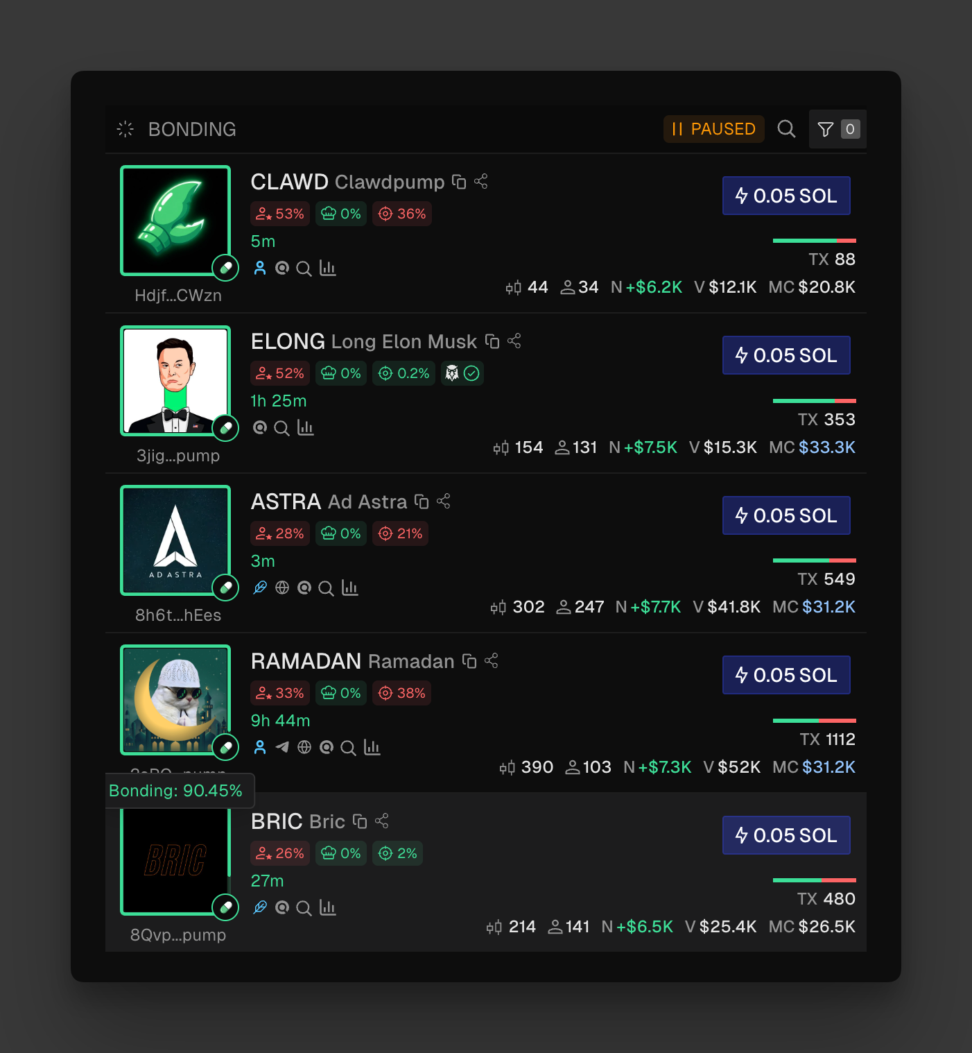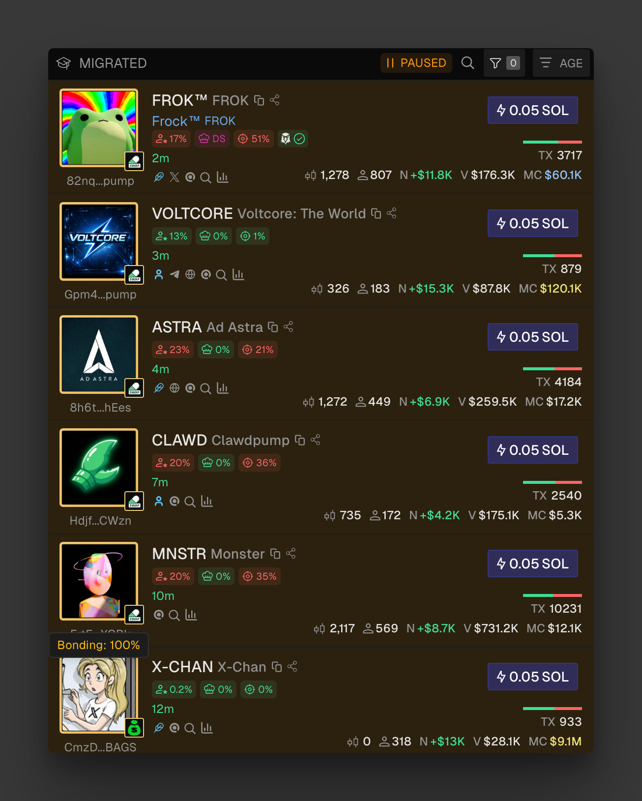 Tokens in this phase are transitioning out of the ultra-low cap stage and often entering stronger momentum. Reaching bonding completion is typically a key milestone, a clear sign the token is gaining traction and it's moving to higher market caps.
