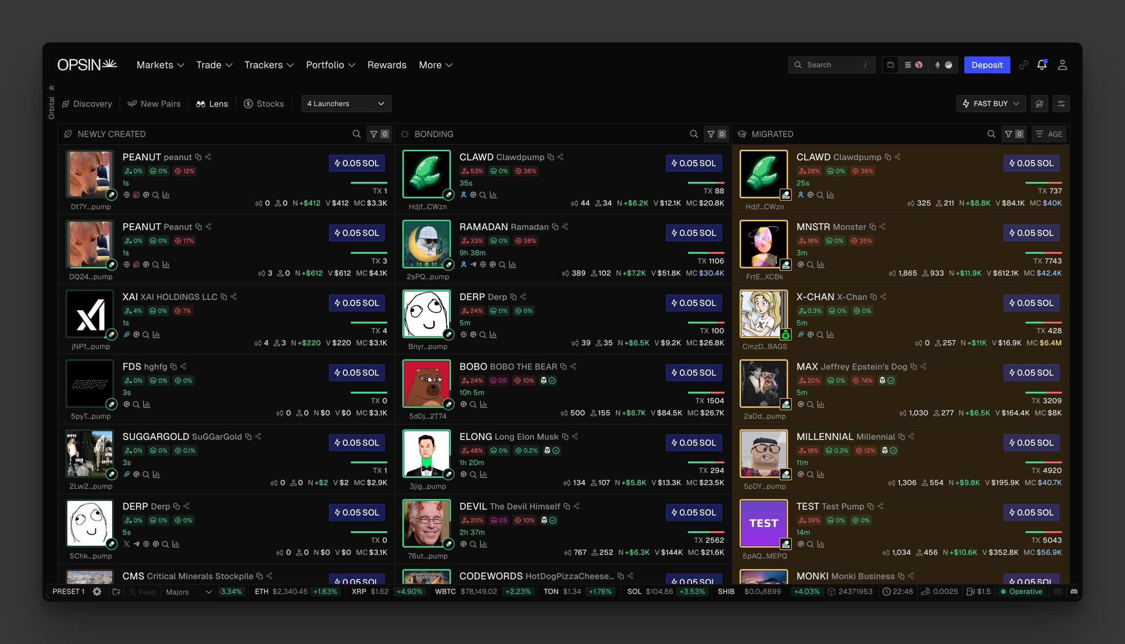 The first column lists every token the moment it’s deployed. Stay ahead of the crowd by hopping on the hottest trends and narratives the second they emerge.