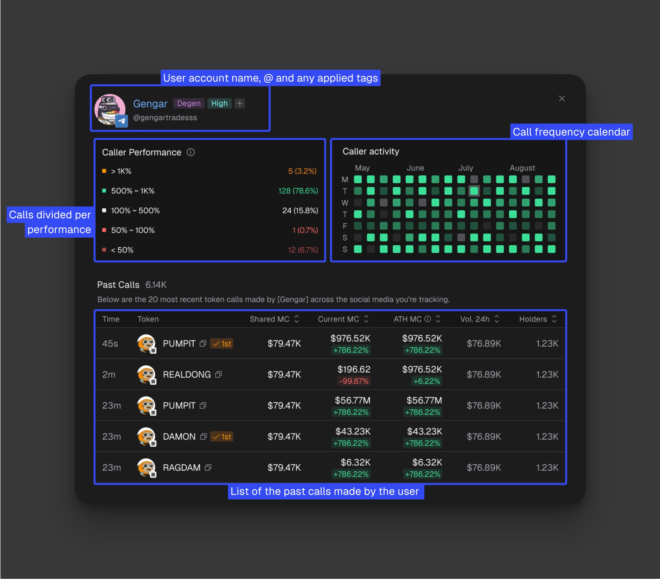 See caller analytics on past calls