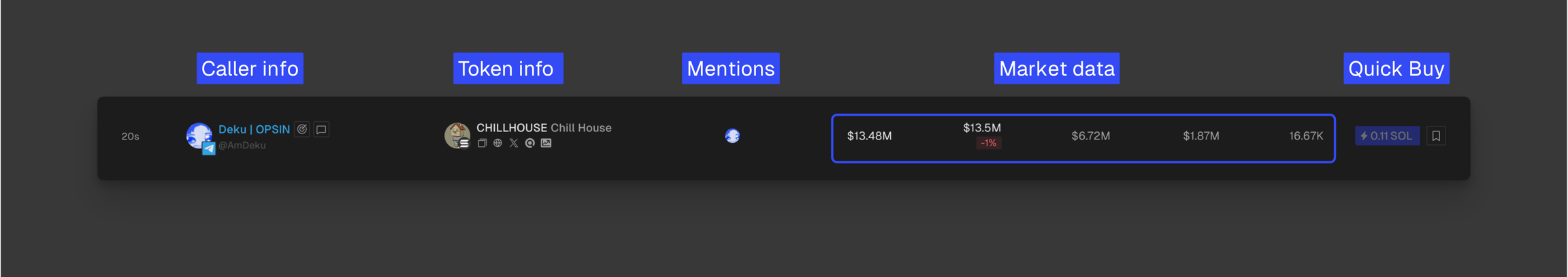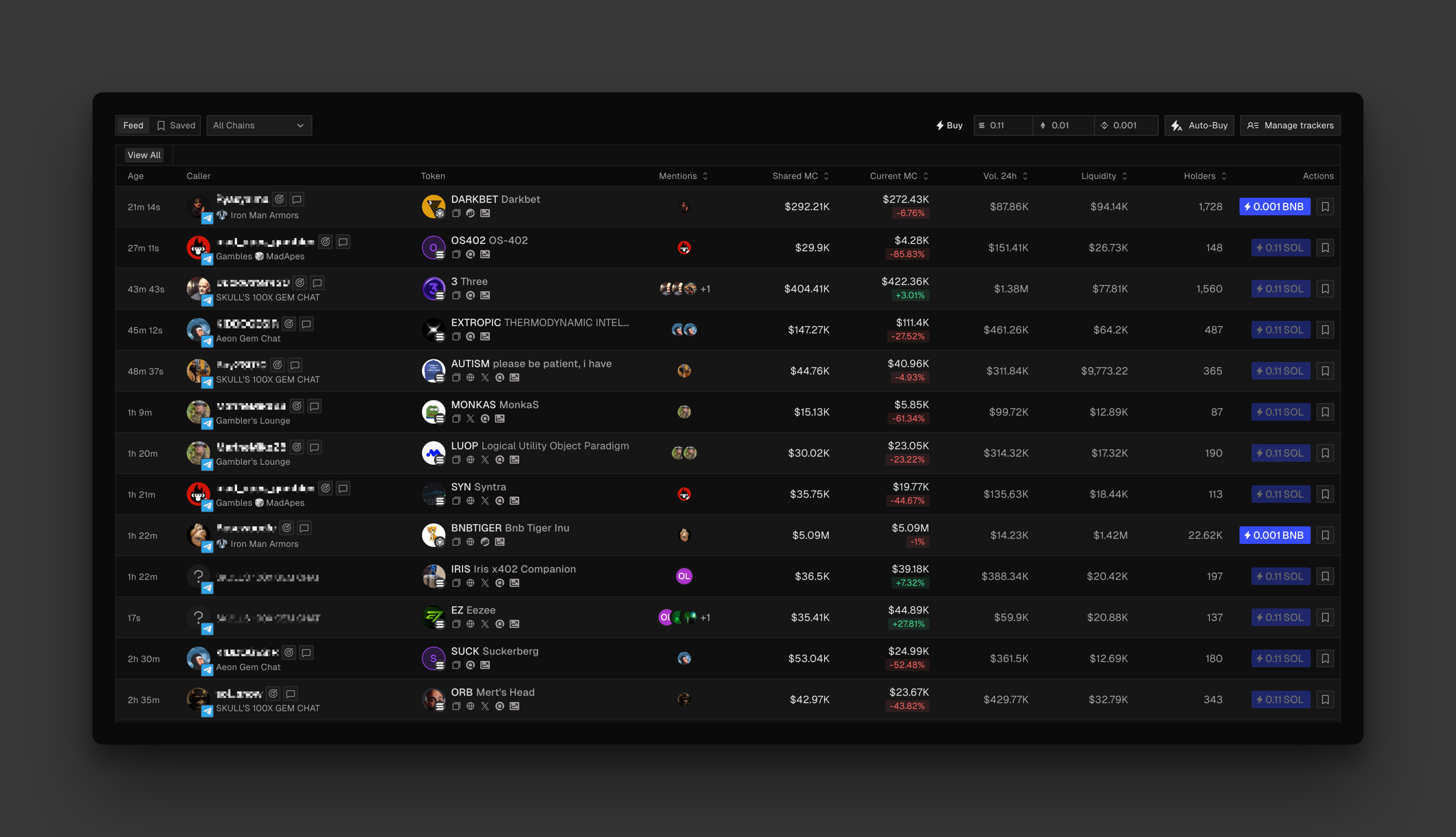 Track all the token mentions over Telegram, Discord and X, in real-time.