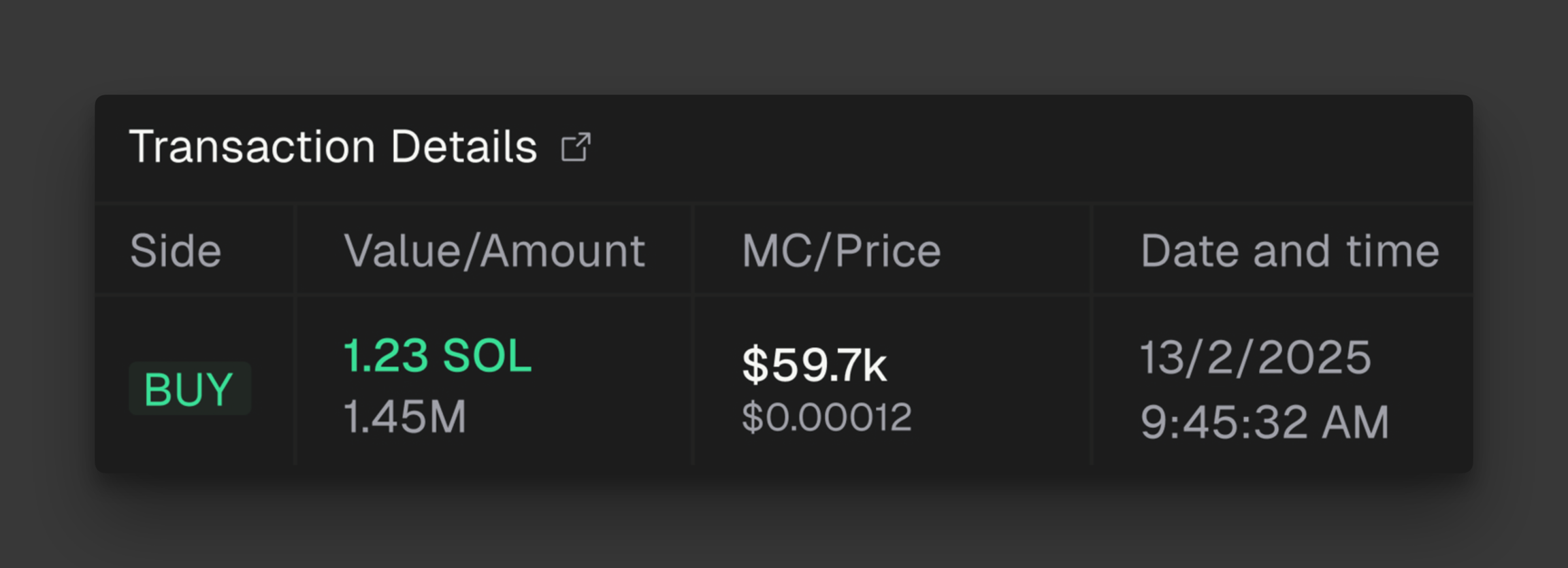 View transactions made by a specific wallet filtered from the transactions table.