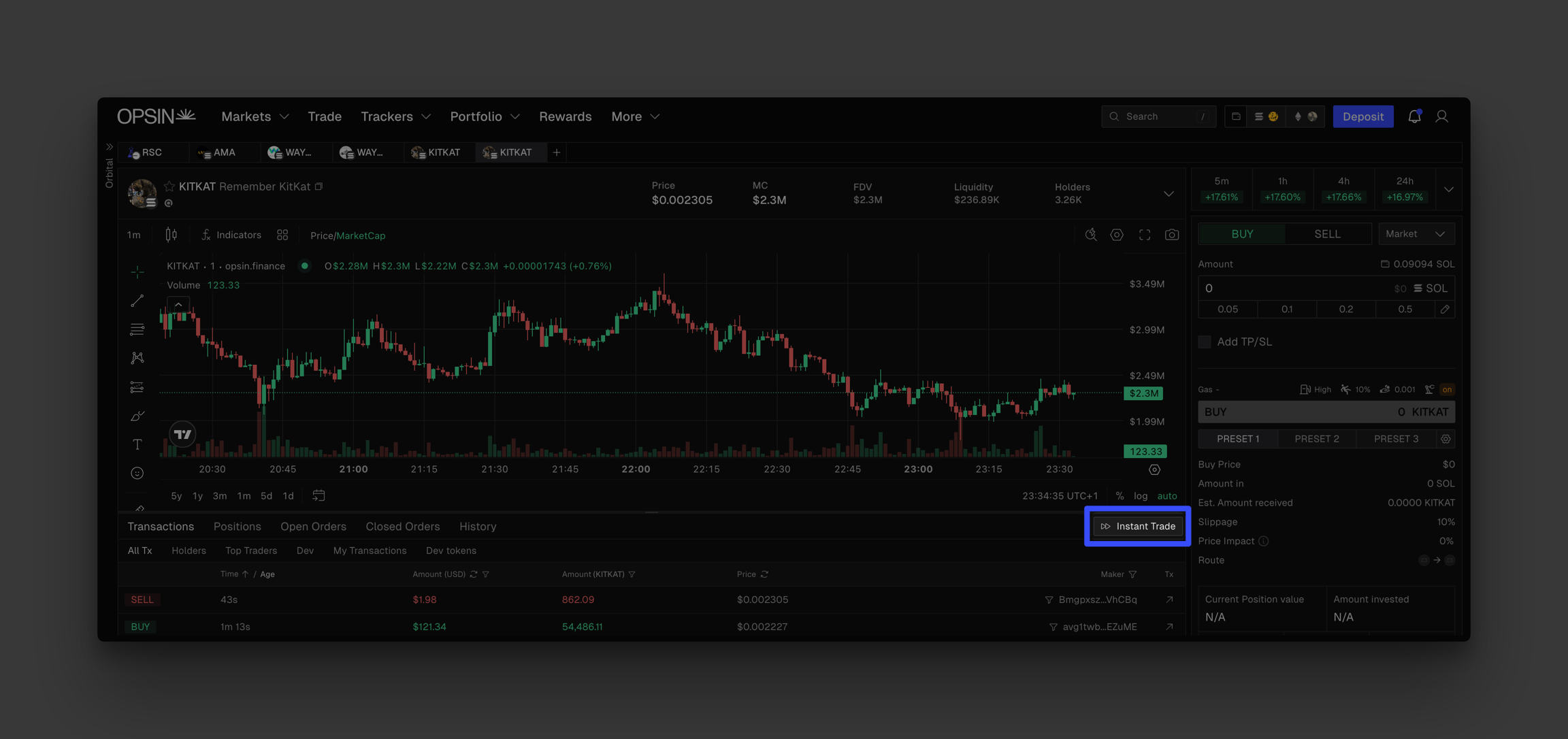 Instant trade function