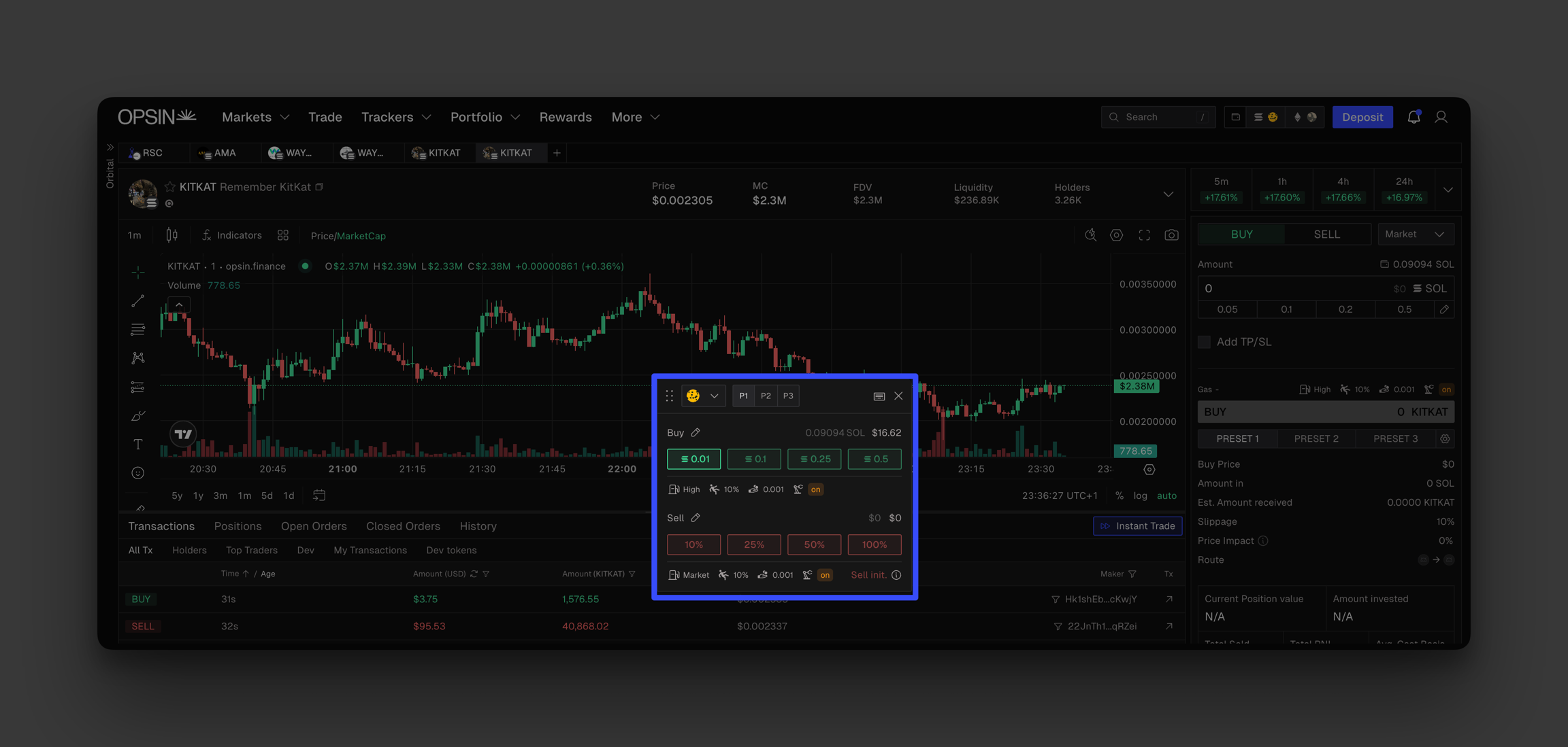 Once enabled, a floating trade panel appears. You can drag and position it anywhere on your screen. It automatically syncs with the selected token and applies your preset trade settings and amounts for immediate execution.